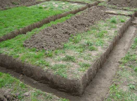 Глубина траншеи выходит где-то 40-50 см, заканчивается ее выкапывание на глине, которую тяжело копать: сначала снимается около 10 см верхнего плодородного слоя почвы, затем – 10-20 см песчано-глиняной смеси, а в конце — 10 см твердой глины. Небольшой запас по глубине необходим для обустройства дренажной системы и чтобы было пространство для утепления подошвы основания.