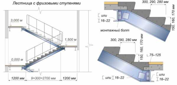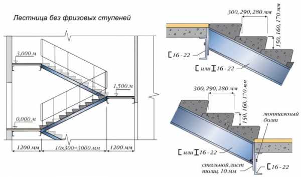 Рис.2. Принципиальная конструкция косоурных лестниц с фризовыми ступенями