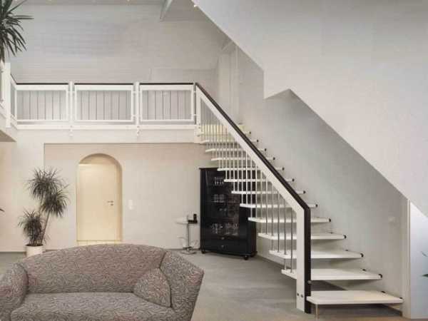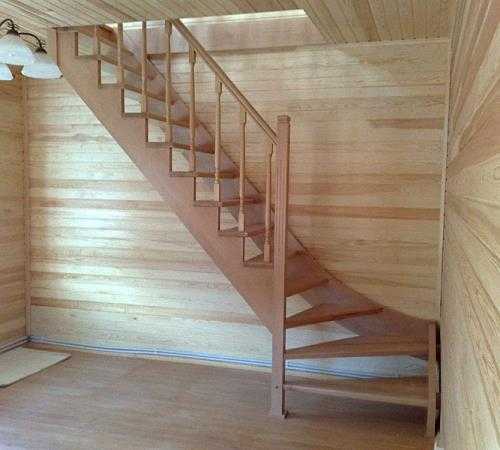 - Стандартное одномаршевое сооружение имеет вид прямой конструкции, расположенной под углом, составляющим 30-45 гр. Установка подобной конструкции невозможна при высоте потолка более 250 см – ступеньки будут очень крутыми.