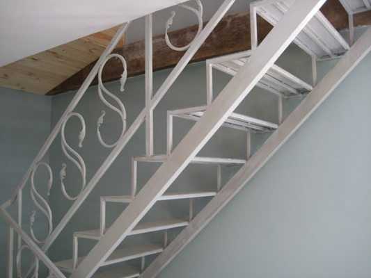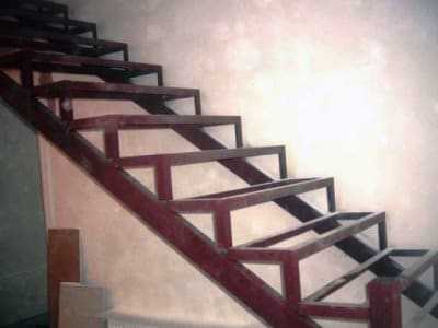 Ставится на ребро швеллер с параметрами 8-10. Настил подбирается из стальных элементов, подготовленных для будущей облицовки. Ограждениями выступает угловая сталь, для опор и проступей применяется арматура.