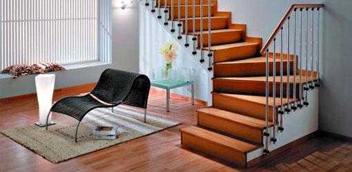 Покрытие ступеней, также, должно обладать шумопоглощающими свойствами. Ковровые покрытия и дерево великолепно сглаживают звук, а керамическая плитка, керамзитобен и камень, наоборот, усиливают шумовой эффект от шагов при передвижении по лестничному маршу.