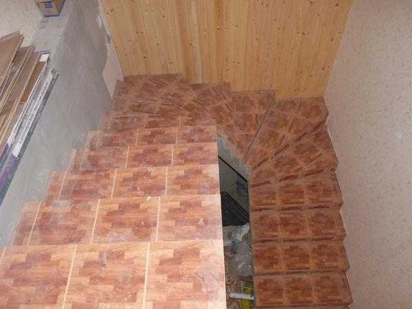Разнообразие видов, расцветок и рисунков керамической плитки позволяют оформить лестницу в стиле: