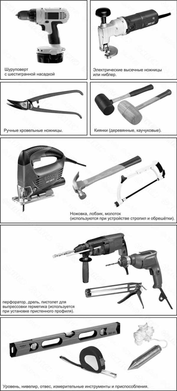 Устройство кровельного пирога под металлочерепицуИнструменты