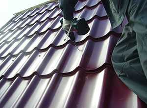 Перед окончательным закрепление листов к обрешетке элементы сначала не жестко стыкуют между собой и выравнивают по карнизу. Фиксация деталей кровельного покрытия осуществляется саморезами с резиновыми прокладками под поперечную волну и в нижнюю ее часть при продольном соединении.