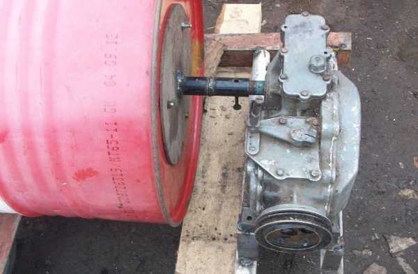 Характеристики двигателя должны соответствовать номинальной мощности 2200 Вт, которая обеспечивает движение бака со скоростью 1500 оборотов в минуту. При этом рекомендуемая скорость вращения приводного вала составляет 48 оборотов в минуту. Достичь показателя можно путём установки редуктора или соответствующие шкивы ременной передачи.