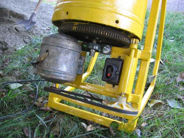 Особое внимание уделите такой детали как электродвигатель, убедитесь что он достаточно мощный для того что бы корректно работать с емкостями которые имеют большой вес. Для изготовления бетономешалки в домашних условиях вам подойдет эта часть конструкции со следующими характеристиками: кол-во оборотов 1500, «сила» 2,2 кВт. Не забывайте так же о том, что эту скорость необходимо держать в пределах до 48 оборотов за минуту. Редуктор, как аналог ременная передача с подходящими шкивами помогут вас справиться с этой задачей.
