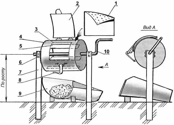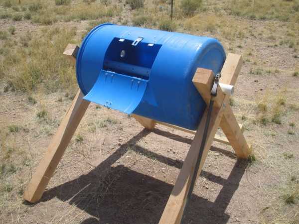 - Обратите внимание, чтобы ось и емкость вращались вместе — рама станет сложнее, но при этом увеличиться её надежность, и будет отсутствовать необходимость в уплотнителях на днище. Последний момент влияет на срок эксплуатации готового устройства.