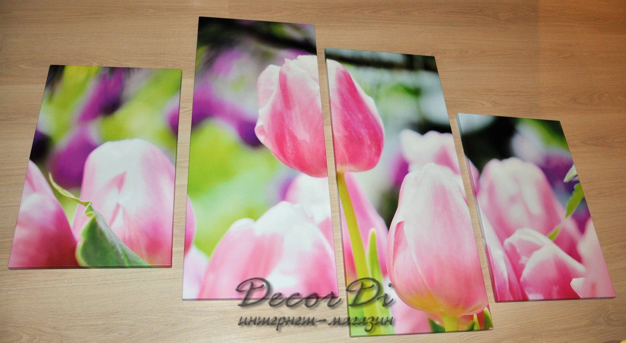 - изображение переходит из одного полотна-модуля в другой − в этом случае их нужно повесить на расстоянии друг от друга примерно в 2-3 см так, чтобы после пробела продолжение рисунка совпадало с предыдущим фрагментом;