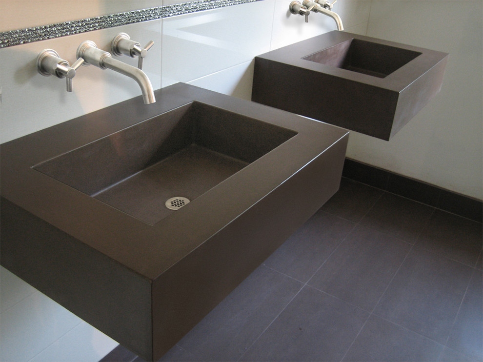 Что касается вариантов формы, стиля и размера раковины, ничто не сравнится с бетоном. Trueform предлагает ряд популярных форм и размеров готовых умывальников — от 14 до 120 дюймов в длину. Использование готовых форм для умывальника — это более быстрый и экономичный подход при проектировании индивидуальной раковины.