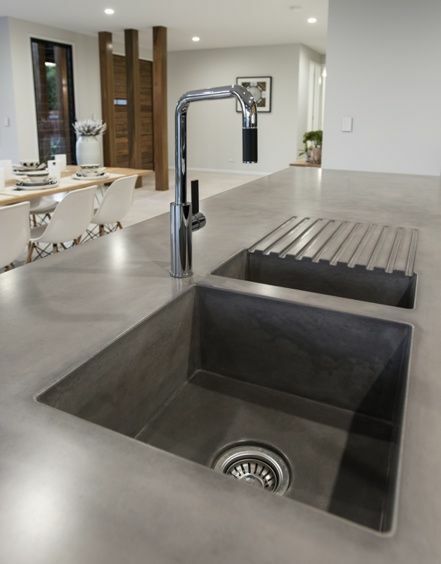 После завершения всех отделочных работ нужно смонтировать все сантехническое оборудование и подключить мойку. Раковина из бетона – стильный и лаконичный элемент, который дополнит и подчеркнет любой интерьер, добавив ему монолитности и, в то же время, изысканности.