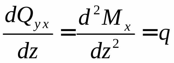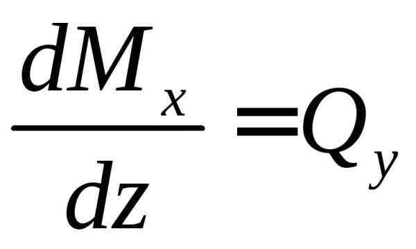 Построение эпюры проводится в соответствии с формулой (6.1) на основе известных дифференциальных зависимостей между Qу, Мх и интенсивностью распределенной нагрузки q.
