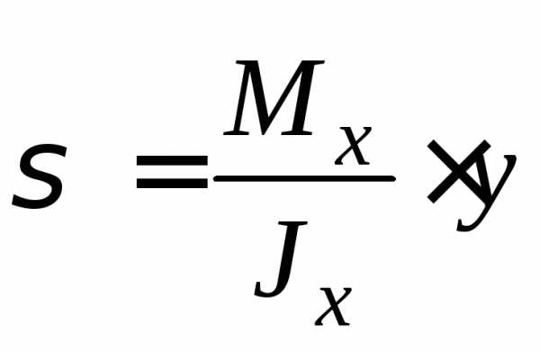 От изгибающих моментов Mx в сечении балки возникают нормальные напряжения σ, от поперечных сил Qy ─ касательные напряжения τ. Решающее влияние на прочность балок имеют нормальные напряжения, поэтому составляют условие прочности по нормальным напряжениям: