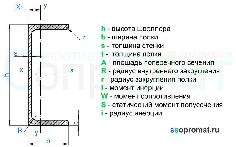 Размеры и характеристики стандартного поперечного сечения швеллера