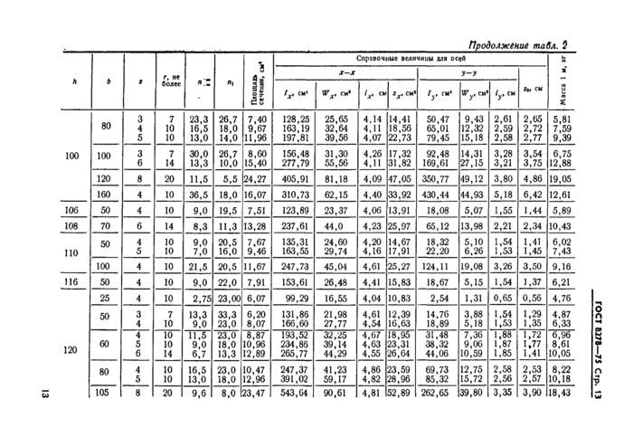 Для полной таблицы со статическими параметрами Момент инерции и Модуль упругого сечения — поверните экран!