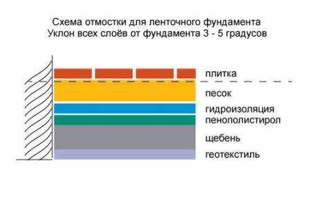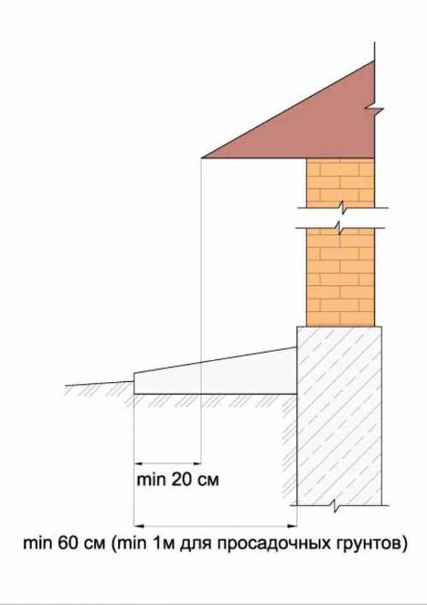 ΠΡΠΌΠΎΡΡΠΊΡ Π΄Π΅Π»Π°ΡΡ ΠΏΠΎ ΠΏΠ΅ΡΠΈΠΌΠ΅ΡΡΡ Π²ΡΠ΅Π³ΠΎ Π·Π΄Π°Π½ΠΈΡ, ΡΠΈΡΠΈΠ½ΠΎΠΉ ΠΏΡΠΈΠΌΠ΅ΡΠ½ΠΎ 60-80 ΡΠΌ ΠΈ Ρ Π½Π΅Π±ΠΎΠ»ΡΡΠΈΠΌ ΡΠΊΠ»ΠΎΠ½ΠΎΠΌ (3-10Β°) Π§ΠΠ ΠΠΠ Π¨ΠΠ Π, Π’ΠΠ ΠΠ£Π§Π¨Π Π±ΡΠ΄ΡΡ ΠΎΡΠ²ΠΎΠ΄ΠΈΡΡΡΡ ΠΎΡΠ°Π΄ΠΊΠΈ. Π¨ΠΈΡΠΈΠ½Π° ΠΎΡΠΌΠΎΡΡΠΊΠΈ Π·Π°Π²ΠΈΡΠΈΡ ΠΎΡ ΡΠΈΠΏΠ° ΡΡΠ½ΡΠ°, Π½ΠΎ ΠΏΡΠΈ ΡΡΠΎΠΌ Π²ΡΠ΅Π³Π΄Π° Π΄ΠΎΠ»ΠΆΠ½Π° Π±ΡΡΡ Π½Π° 20 ΡΠΌ Π±ΠΎΠ»ΡΡΠ΅, ΡΠ΅ΠΌ ΠΊΠ°ΡΠ½ΠΈΠ·Π½ΡΠΉ Π²ΡΡΡΡΠΏ ΠΊΡΡΡΠΈ. ΠΠ±ΡΡΠ½ΠΎ ΡΠ°Π·ΠΌΠ΅Ρ ΠΎΡΠΌΠΎΡΡΠΊΠΈ Π½Π΅ ΠΏΡΠ΅Π²ΡΡΠ°Π΅Ρ 80 ΡΠΌ, Π½ΠΎ Π΅ΡΠ»ΠΈ Π΄ΠΎΠΌ ΡΡΠΎΠΈΡ Π½Π° ΠΎΡΠΎΠ±ΠΎ Π»Π΅Π³ΠΊΠΎΡΠΆΠΈΠΌΠ°Π΅ΠΌΡΡ Π³ΡΡΠ½ΡΠ°Ρ , Π΅Π΅ ΡΠΈΡΠΈΠ½Π° ΠΌΠΎΠΆΠ΅Ρ Π΄ΠΎΡΡΠΈΠ³Π°ΡΡ 1 ΠΌ.