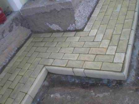 ΠΠΎΠ²Π΅ΡΡ ΠΏΠ»Π΅Π½ΠΊΠΈ Π² ΠΏΠΎΠ΄Π»ΠΎΠΆΠΊΠ΅ Π½Π°ΡΡΠΏΠ°ΡΡ ΡΠ»ΠΎΠΉ ΠΏΠ΅ΡΠΊΠ°. ΠΠ° Π½Π΅Π³ΠΎ Π½Π°Π»ΠΈΠ²Π°ΡΡ ΡΠ΅ΠΌΠ΅Π½ΡΠ½ΠΎ-ΠΏΠ΅ΡΡΠ°Π½ΡΡ ΡΠΌΠ΅ΡΡ, ΠΏΡΠΈΠ³ΠΎΡΠΎΠ²Π»Π΅Π½Π½ΡΡ Π² ΠΏΡΠΎΠΏΠΎΡΡΠΈΠΈ 4Ρ 1. Π’ΠΎΠ»ΡΠΈΠ½Π° ΡΠ»ΠΎΡ Π±Π΅ΡΠΎΠ½Π° Π² Π΄Π°Π½Π½ΠΎΠΌ ΡΠ»ΡΡΠ°Π΅ Π΄ΠΎΠ»ΠΆΠ½Π° Π±ΡΡΡ ΡΠ°Π²Π½Π° 3 ΡΠΌ. ΠΠ°Π»ΠΈΡΡΠΉ ΡΡΠ°ΡΡΠΎΠΊ ΡΠ°Π·Π²ΡΠ°Π²Π½ΠΈΠ²Π°ΡΡ ΡΠ²Π°Π±ΡΠΎΠΉ. ΠΡΡΡΡΠ°ΡΠΊΡ Π½Π° ΠΎΡΠΌΠΎΡΡΠΊΠ΅ ΠΏΠΎΠ»ΠΎΠΆΠ΅Π½ΠΎ ΡΠΊΠ»Π°Π΄ΡΠ²Π°ΡΡ ΠΏΠΎ Π½Π°ΠΏΡΠ°Π²Π»Π΅Π½ΠΈΡ ΠΎΡ ΡΠ΅Π±Ρ Ρ ΠΏΠ΅ΡΠ΅Π²ΡΠ·ΠΊΠΎΠΉ ΡΠ²ΠΎΠ². ΠΠ΅ΠΆΠ΄Ρ ΠΎΡΠ΄Π΅Π»ΡΠ½ΡΠΌΠΈ ΠΏΠ»ΠΈΡΠΊΠ°ΠΌΠΈ ΡΠ»Π΅Π΄ΡΠ΅Ρ ΠΎΡΡΠ°Π²Π»ΡΡΡ Π·Π°Π·ΠΎΡ Π² 1 ΡΠΌ.