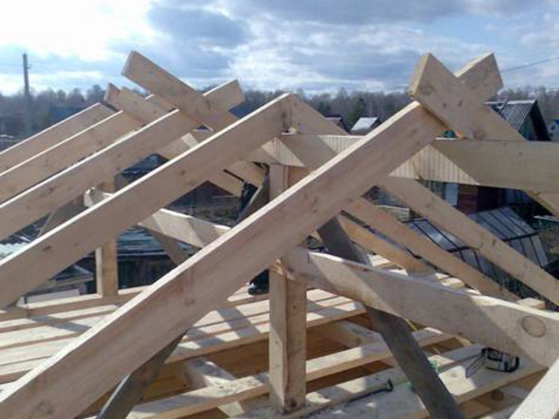 Места стыковки элементов обязательно подпираются стойкой, которая повышает надежность сооружения. Опора располагается на расстоянии ¼ длины больших стропил от конька. На месте фронтонов двускатной крыши устанавливаются укороченные стропила.