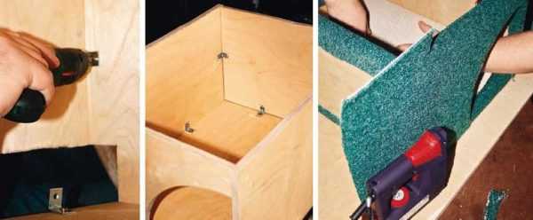 ΠΠ²Π° ΠΊΡΡΠΊΠ° ΡΠ°Π½Π΅ΡΡ 75*50 ΡΠΌ Π½Π°ΡΠ΅Π·Π°Π»ΠΈ Π½Π° 4 ΠΏΡΡΠΌΠΎΡΠ³ΠΎΠ»ΡΠ½ΠΈΠΊΠ°. ΠΠ· Π½ΠΈΡ ΡΠ΄Π΅Π»Π°Π»ΠΈ ΠΊΡΡΡΡ, ΠΏΠΎΠ» ΠΈ Π΄Π²Π΅ Π±ΠΎΠΊΠΎΠ²ΡΠ΅ ΡΡΠ΅Π½ΠΊΠΈ. ΠΡΠΈ ΠΈΠ·Π³ΠΎΡΠΎΠ²Π»Π΅Π½ΠΈΠΈ ΠΎΠ΄Π½ΠΎΠΉ ΠΈΠ· ΠΏΠΎΠ»ΠΎΠΊ ΠΎΡΡΠ°Π»ΡΡ ΠΊΡΡΠΎΠΊ ΡΠ°Π½Π΅ΡΡ Ρ ΠΏΠΎΠ»ΡΠΊΡΡΠ³Π»ΡΠΌ ΠΎΡΠ²Π΅ΡΡΡΠΈΠ΅ΠΌ ΡΠ±ΠΎΠΊΡ. ΠΠ³ΠΎ ΡΠ΅ΡΠ΅Π½ΠΎ ΡΠ΄Π΅Π»Π°ΡΡ Β«Π²Ρ ΠΎΠ΄ΠΎΠΌΒ», ΠΈ Π·Π°Π΄Π½ΡΡ ΡΡΠ΅Π½ΠΊΡ Π²ΡΡΠ΅Π·Π°Π»ΠΈ ΠΈΠ· ΠΎΠ΄Π½ΠΎΠ³ΠΎ ΠΈΠ· ΠΊΡΡΠΊΠΎΠ². ΠΡΡΠ°Π»ΠΎΡΡ ΡΠΎΠ±ΡΠ°ΡΡ Π΄ΠΎΠΌΠΈΠΊ, ΡΡΠΎ ΡΠΎΠ²ΡΠ΅ΠΌ Π½Π΅ΡΠ»ΠΎΠΆΠ½ΠΎ. ΠΡΠ»ΠΈ ΠΈΡΠΏΠΎΠ»ΡΠ·ΠΎΠ²Π°Π½Ρ ΠΌΠ°Π»Π΅Π½ΡΠΊΠΈΠ΅ ΠΌΠ΅ΡΠ°Π»Π»ΠΈΡΠ΅ΡΠΊΠΈΠ΅ ΡΠ³ΠΎΠ»ΠΊΠΈ, ΠΊΠΎΡΠΎΡΡΠ΅ ΠΊΡΠ΅ΠΏΠΈΠ»ΠΈΡΡ ΠΊΠΎΡΠΎΡΠΊΠΈΠΌΠΈ ΡΠ°ΠΌΠΎΡΠ΅Π·Π°ΠΌΠΈ.