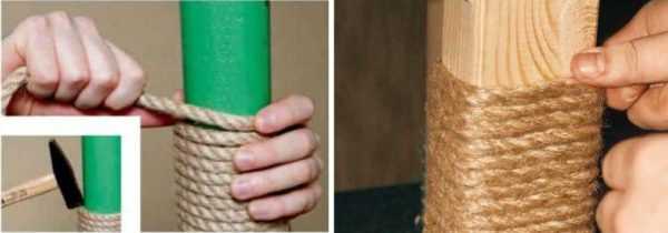 ΠΠΎΡΠ»Π΅Π΄Π½ΠΈΠΉ ΡΡΠ°ΠΏΒ β ΠΎΠ±ΠΌΠ°ΡΡΠ²Π°Π΅ΠΌ ΡΡΠΎΠ»Π±Ρ, Π΄Π΅Π»Π°Ρ ΠΊΠΎΠ³ΡΠ΅ΡΠΎΡΠΊΡ. ΠΠ°ΠΊΡΠ΅ΠΏΠΈΡΡ Π²Π΅ΡΠ΅Π²ΠΊΡ ΠΊ ΡΡΠΎΠ»Π±Ρ ΠΏΡΠΎΡΠ΅ Π²ΡΠ΅Π³ΠΎ ΡΠΊΠΎΠ±Π°ΠΌΠΈ. ΠΠ΅ΡΠΊΠΎΠ»ΡΠΊΠΎ ΡΠΊΠΎΠ± β ΠΈ Π³ΠΎΡΠΎΠ²ΠΎ. ΠΠ°Π»Π΅Π΅, ΠΏΠ»ΠΎΡΠ½ΠΎ ΠΏΡΠΈΠΆΠΈΠΌΠ°Ρ ΠΎΠ΄ΠΈΠ½ Π²ΠΈΡΠΎΠΊ ΠΊ Π΄ΡΡΠ³ΠΎΠΌΡ, ΠΏΠΎ ΡΠΏΠΈΡΠ°Π»ΠΈ ΠΎΠ±ΠΌΠ°ΡΡΠ²Π°Π΅ΠΌ ΡΡΠΎΠ»Π±Ρ. ΠΠΎΡ ΠΎΠ΄ΠΈΠΌ Π΄ΠΎ ΠΏΡΠ΅Π³ΡΠ°Π΄Ρ, ΡΠ½ΠΎΠ²Π° Π·Π°ΠΊΡΠ΅ΠΏΠ»ΡΠ΅ΠΌ Π²Π΅ΡΠ΅Π²ΠΊΡ ΡΠΊΠΎΠ±Π°ΠΌΠΈ ΠΈ ΠΏΡΠΎΠ΄ΠΎΠ»ΠΆΠ°Π΅ΠΌ Π½Π° ΡΠ»Π΅Π΄ΡΡΡΠ΅ΠΌ ΡΡΠ°ΡΡΠΊΠ΅.
