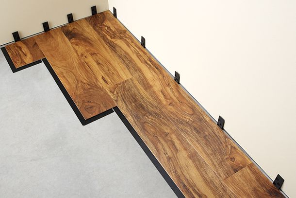 - Убедитесь, что у вас ровный черновой пол. Если вы укладываете ламинат на неровный бетон, используйте самовыравниватель, чтобы выровнять его перед установкой подкладки / подкладки.