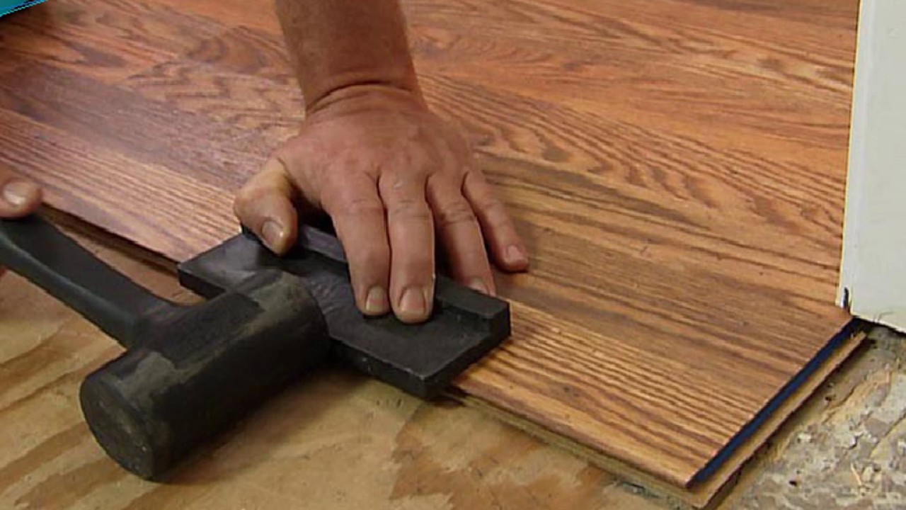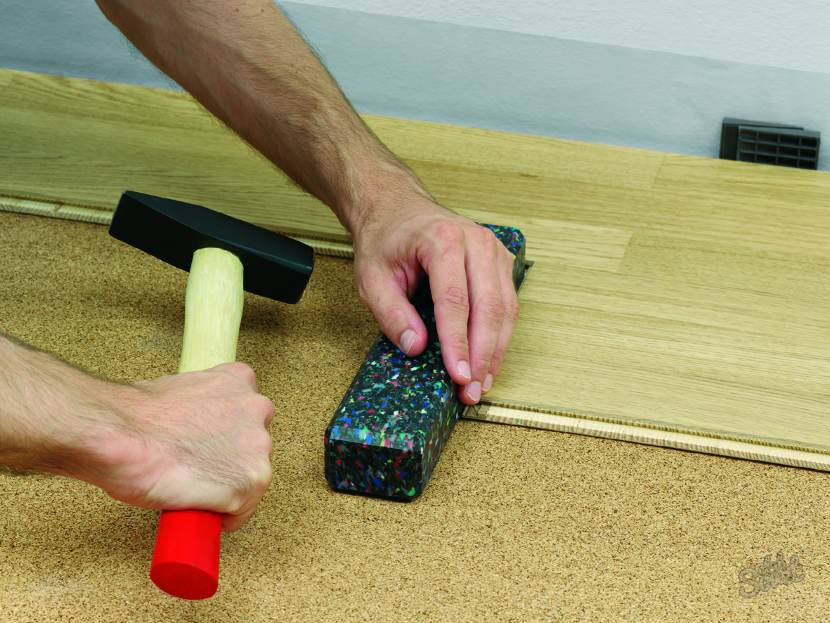- Продольные края планок прижимают друг к другу, приложив к ним обрезок планки и постучав по нему резиновой киянкой.