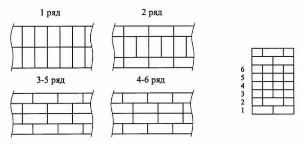 Технология такова: каждый укладываемый верхний ряд перекрывает промежутки предыдущего