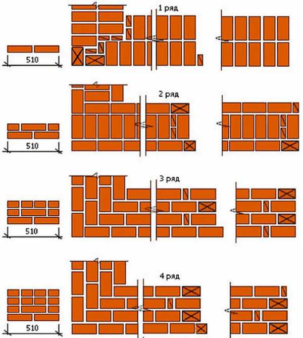Примыкание стен обязательно, чтобы повысить прочность примыкания простенков, что достигается наличием перевязки. Как видите на фото, и как показывает чертеж, все варианты выкладки довольно понятны. Главное, не ошибиться и выложить первый ряд тычком, как и последний – это, к сожалению, одна из распространенных ошибок начинающих каменщиков.