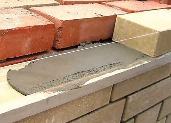 - на торец кирпича ровным слоем нужно нанести цементный раствор;