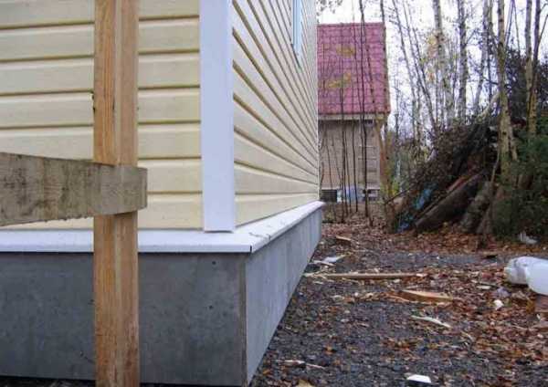 - Выступающий. который создает небольшой выступ из стены. Чаще всего его применяют в деревянных домах или в тех случаях, когда нужно создать теплый подпол. Для этого на выступе монтируют сток и гидроизолируют фундамент.