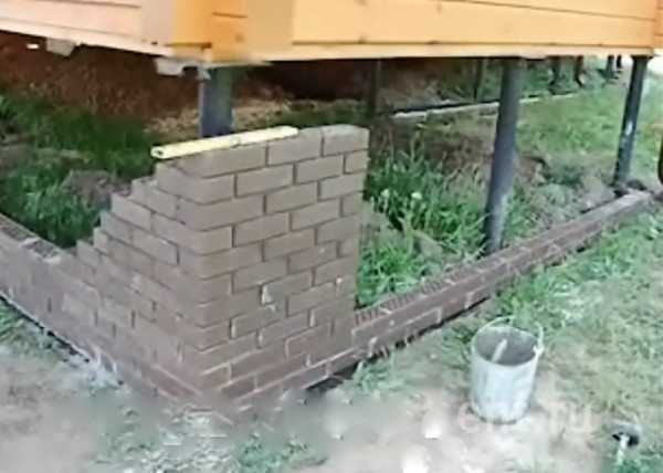 Выполняется забирка (перемычка между свайными столбами), как правило, в небольших кирпичных домах (если есть кирпич для забирки) или устраивается из железобетона.