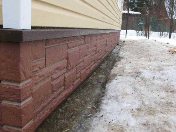 Отделка фундамента искусственным камнем — отличный вариант. Натуральную облицовку не каждый может себе позволить, ввиду большой цены.