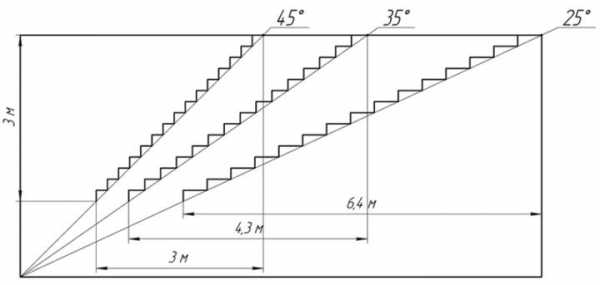Оптимальная схема лестницы и угол наклона на фото.