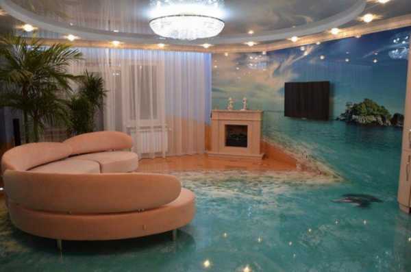 Очень эффектный элемент интерьера – наливной полимерный 3d-пол. Он отличается от обычного стереоскопическим эффектом.