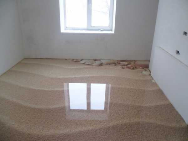 - Черновое основание перед заливкой должно быть сухим, иначе залитый слой отслоится или растрескается при дальнейшей эксплуатации.