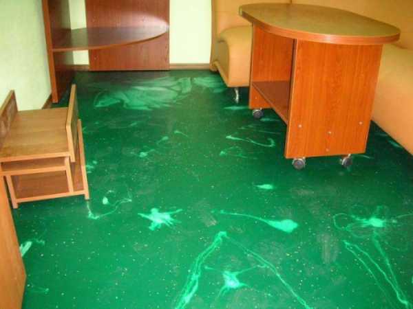 Евгения: «О заливных полах услышала по телевизору, в каком-то ток-шоу. Решились с супругом обзавестись таким на кухне. Взяли зеленого цвета. Смотрится превосходно! Лег идеально ровно, и убирается без проблем».