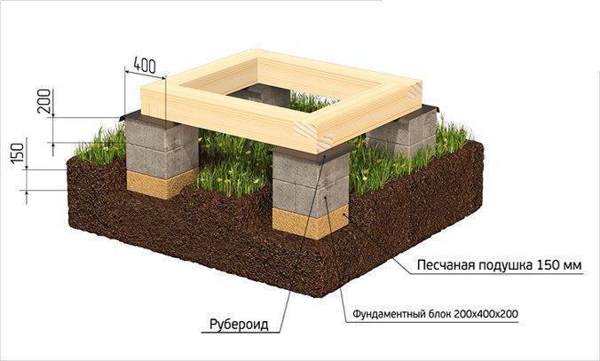 Основания без заглубления в грунт целесообразно использовать при малоэтажном строительстве домов и обустройства других сооружений хозяйственного назначения из сравнительно легких материалов.