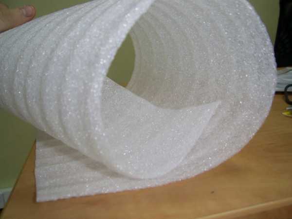 Такой вид материала достаточно распространен в производстве. Вспененная подложка обладает хорошими теплоизоляционными и шумопоглощающими свойствами, демократичной ценой, но применять ее под линолеум не рекомендуется. Под ним подложка сминается и теряет свои свойства.