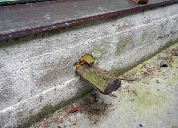 Дело в том, что примерно через месяц после установки брусьев их следует вынимать, однако они «намертво» примерзают к бетону, и сделать отверстие с их помощью уже не получится, останется только выбить.