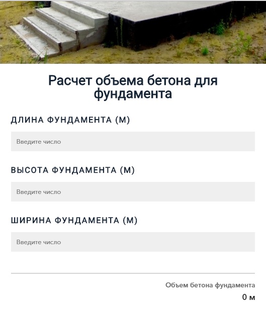 После введения данных нажимается кнопка для проведения расчета. В результате будет получена точная информация относительно того, сколько бетона следует приобрести, чтобы обеспечить оптимальную заливку планируемой конструкции. Благодаря этому, не будет много остатков после выполнения работы.