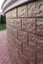 2. Еще одним вариантом цокольной плитки выступает состав в основе которого лежит использование смолы. Такая плитка отличается небольшой толщиной, всего лишь в 2,5-3 мм. По внешнему виду она схожа с клинкерным кирпичом. Такая плитка довольно гибкая и эластичная, поэтому она отлично принимает любую форму, даже на неровной поверхности.