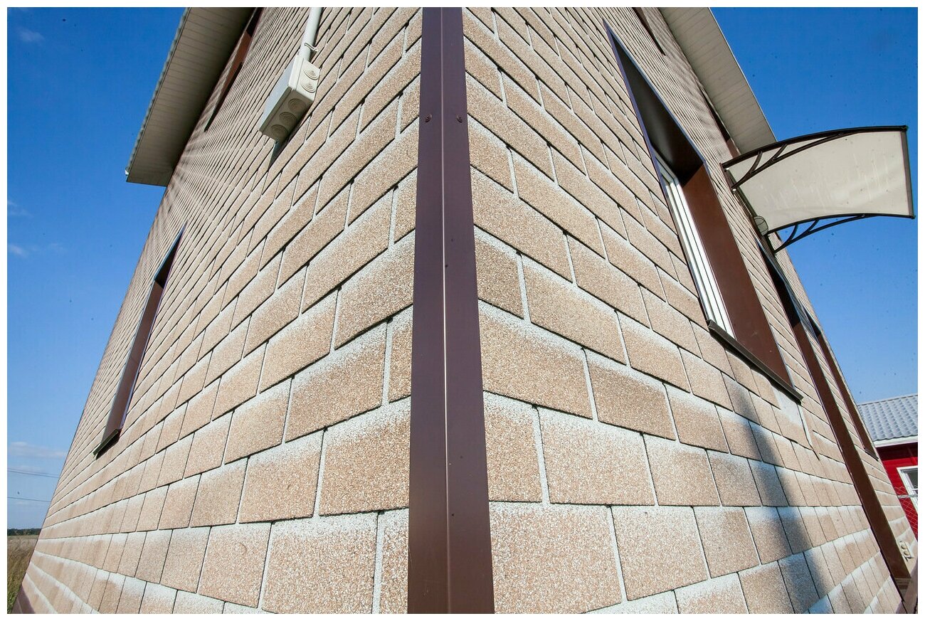 Внешние и внутренние углы закрывают соответствующими угловыми элементами. Такой цоколь не требует обработки гидрофобизирующим составом.