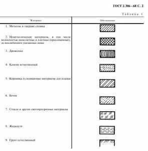 На смену отмененной в 1971 году системе символов был введен ГОСТ 2.306 — 68. Она отличается строгостью, отсутствием художественных эффектов. Нововведенные сечения состоят в следующем: