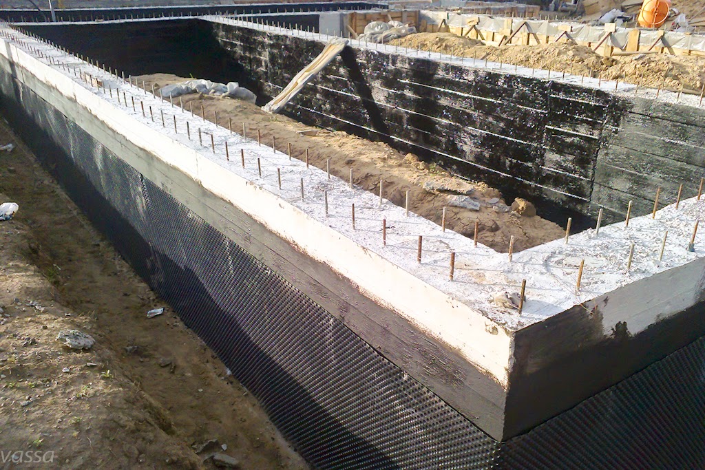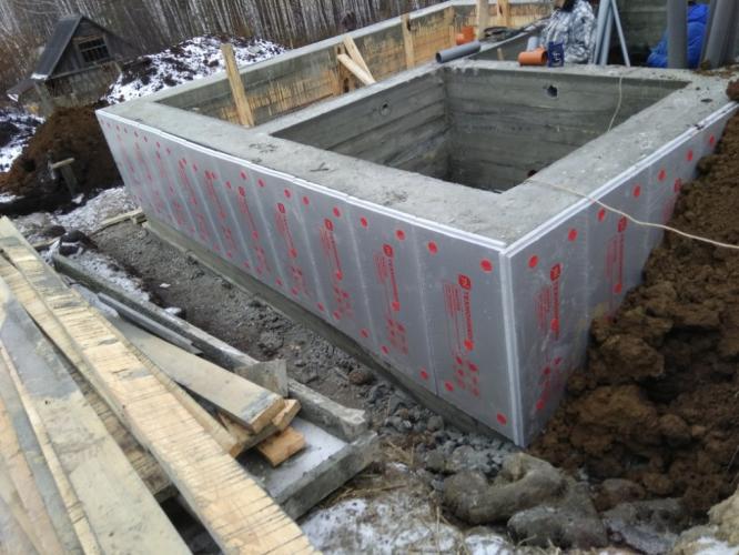 Этого хватит, чтобы демонтировать съемную опалубку и не разрушить при этом стенки траншеи. - Изоляция. Свободное пространство позволяет упростить устройство гидроизоляции и утепления вертикальных частей фундамента. При этом не имеет значения тип материалов: обмазочные, рулонные либо плитные. Доступа в 300 мм достаточно, чтобы произвести монтаж рубероида с помощью газовой горелки или просверлить перфоратором отверстия для фиксации жесткой теплоизоляции.