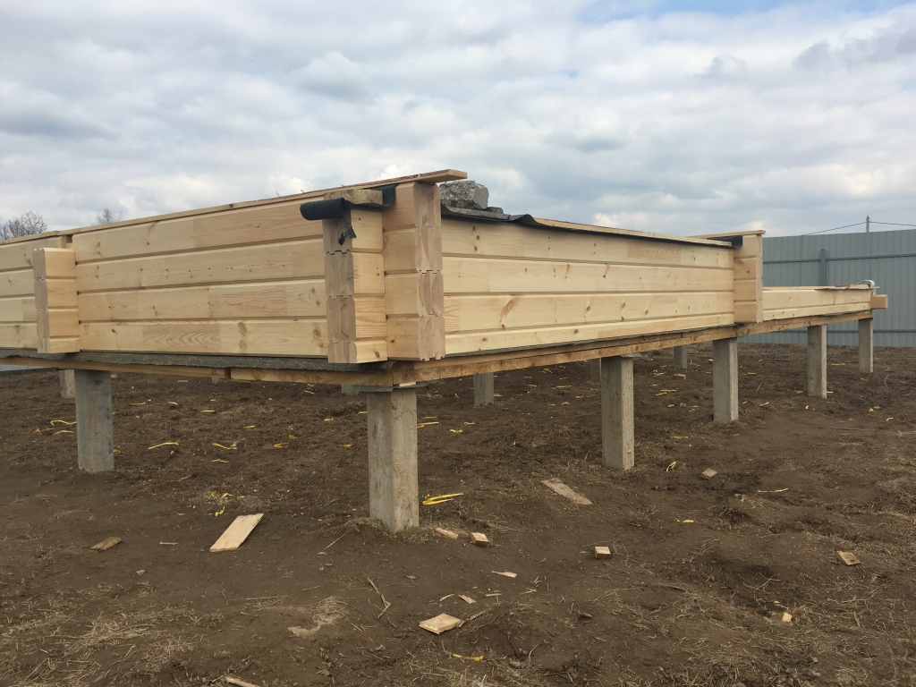 Возьмите во внимание, что брус должен быть только камеральной сушки, так как он не поддается усадке, а это важно. Изделие обязательно стоит обработать антисептиками, чтобы защитить материал от насекомых, плесени и грибков. Привинчивают брус к сваям с помощью специальных болтов.