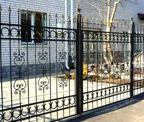 Металлическая ограда с коваными наконечниками и элементами