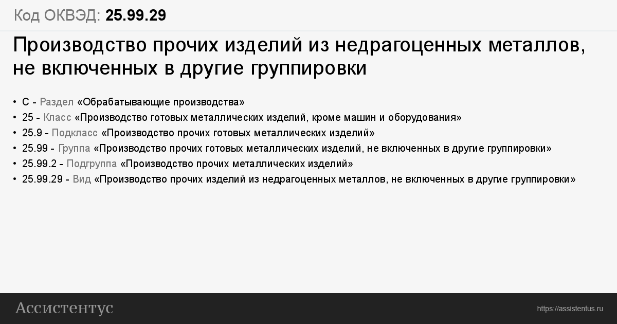 Данный код ОКВЭД не содержит вложенных кодов