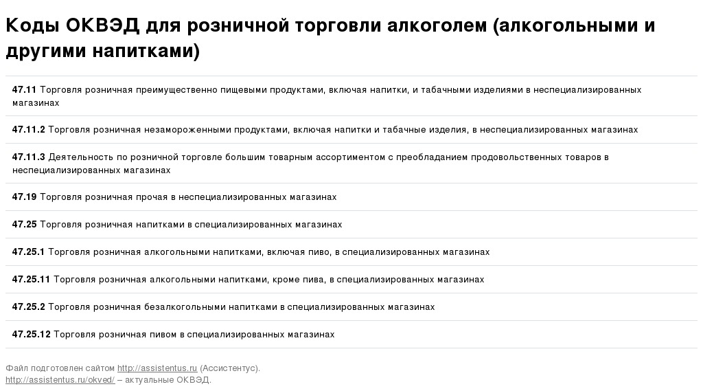 - Коды ОКВЭД