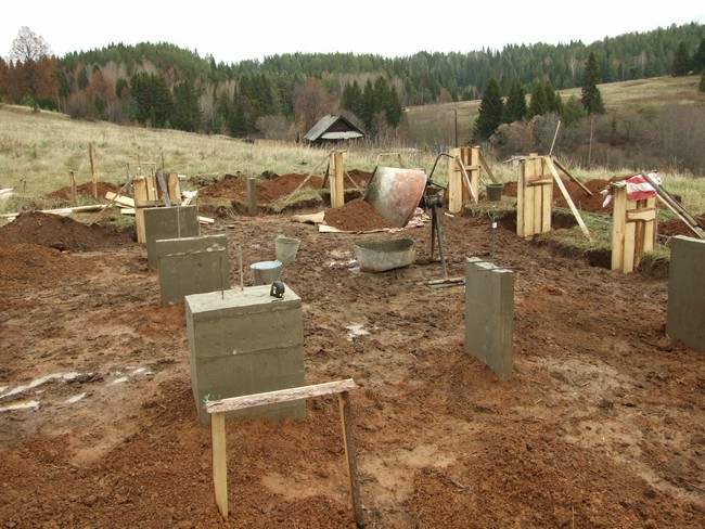 В зависимости от типа постройки, требований к ее прочности и финансового положения хозяев, столбчатый фундамент может быть устроен из: