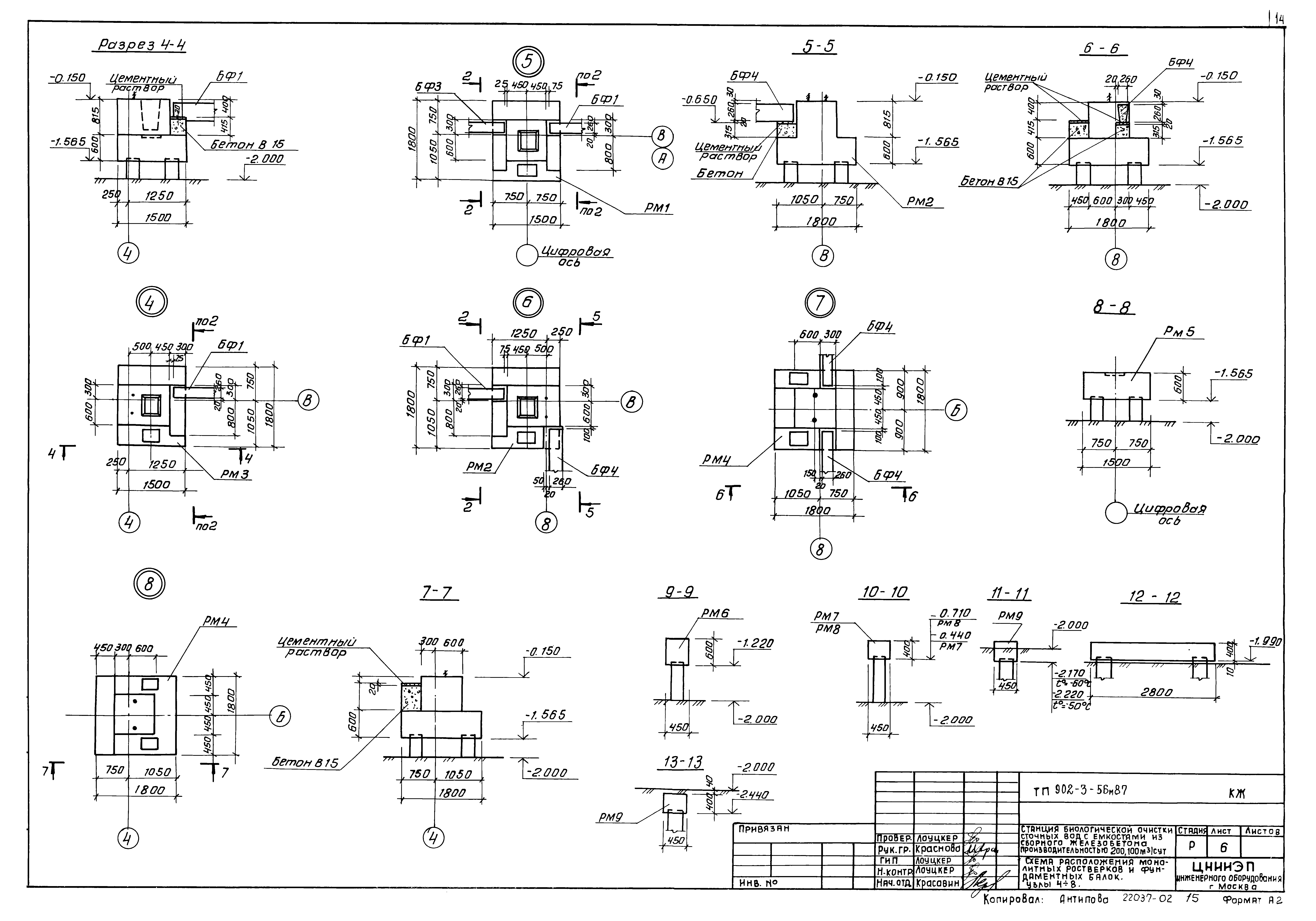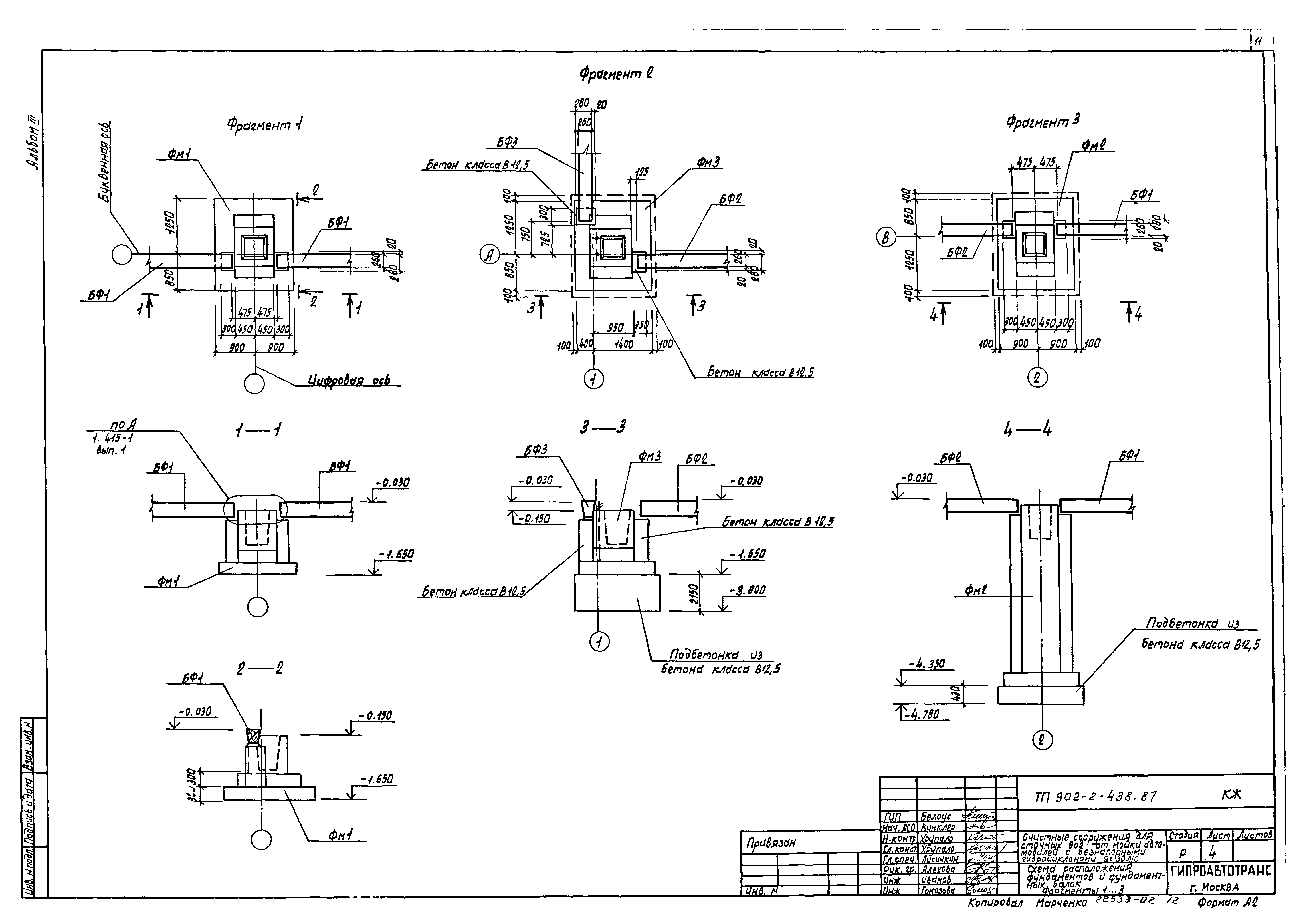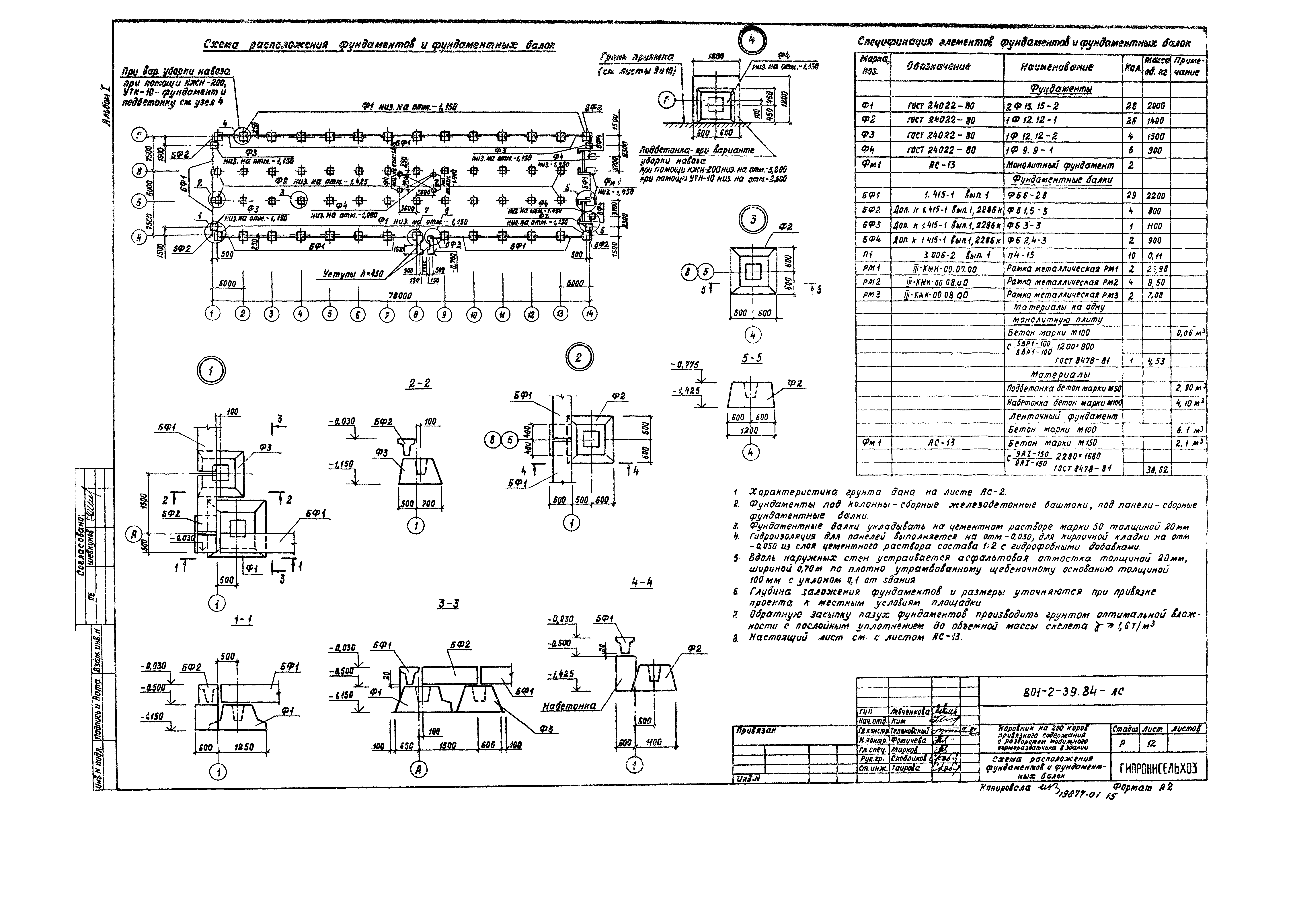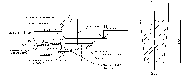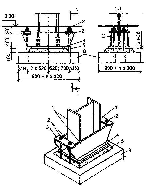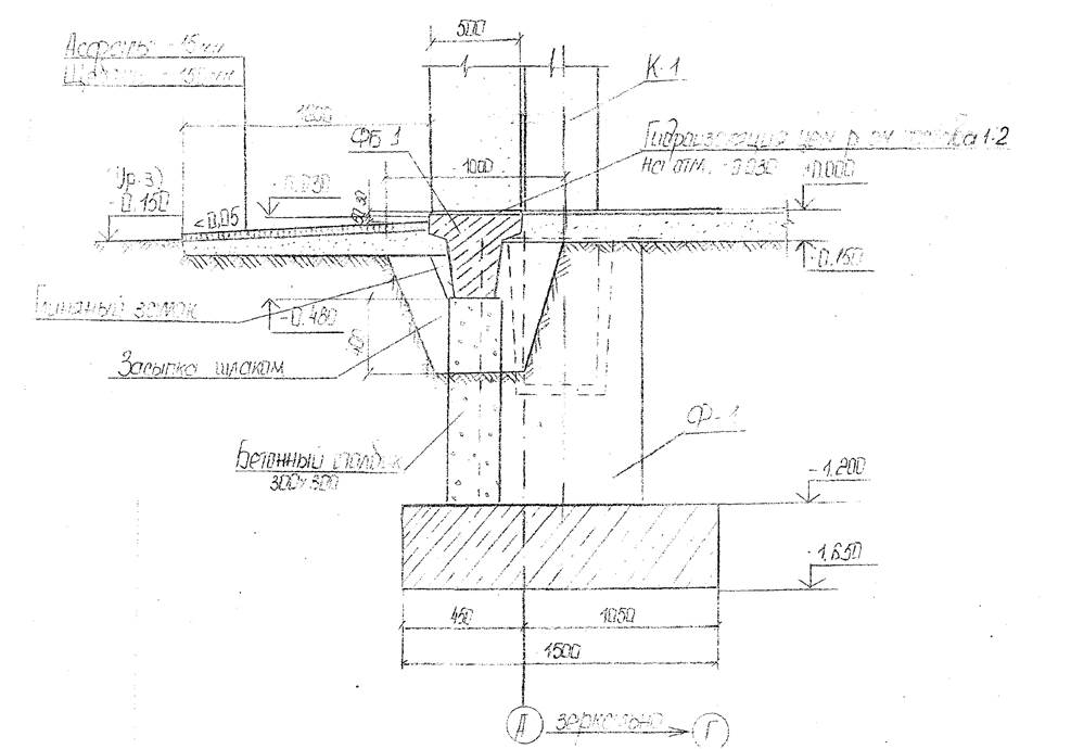 1 – набетонку по верху стакана фундамента до отметки -0.030 выполнять из бетона класса С8/10 после монтажа колонн, рам ворот и балок фундаментных