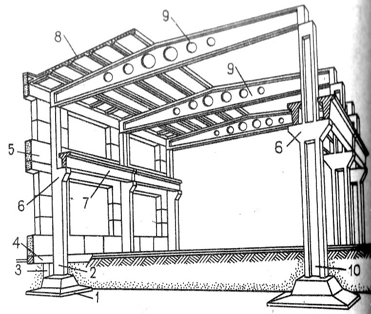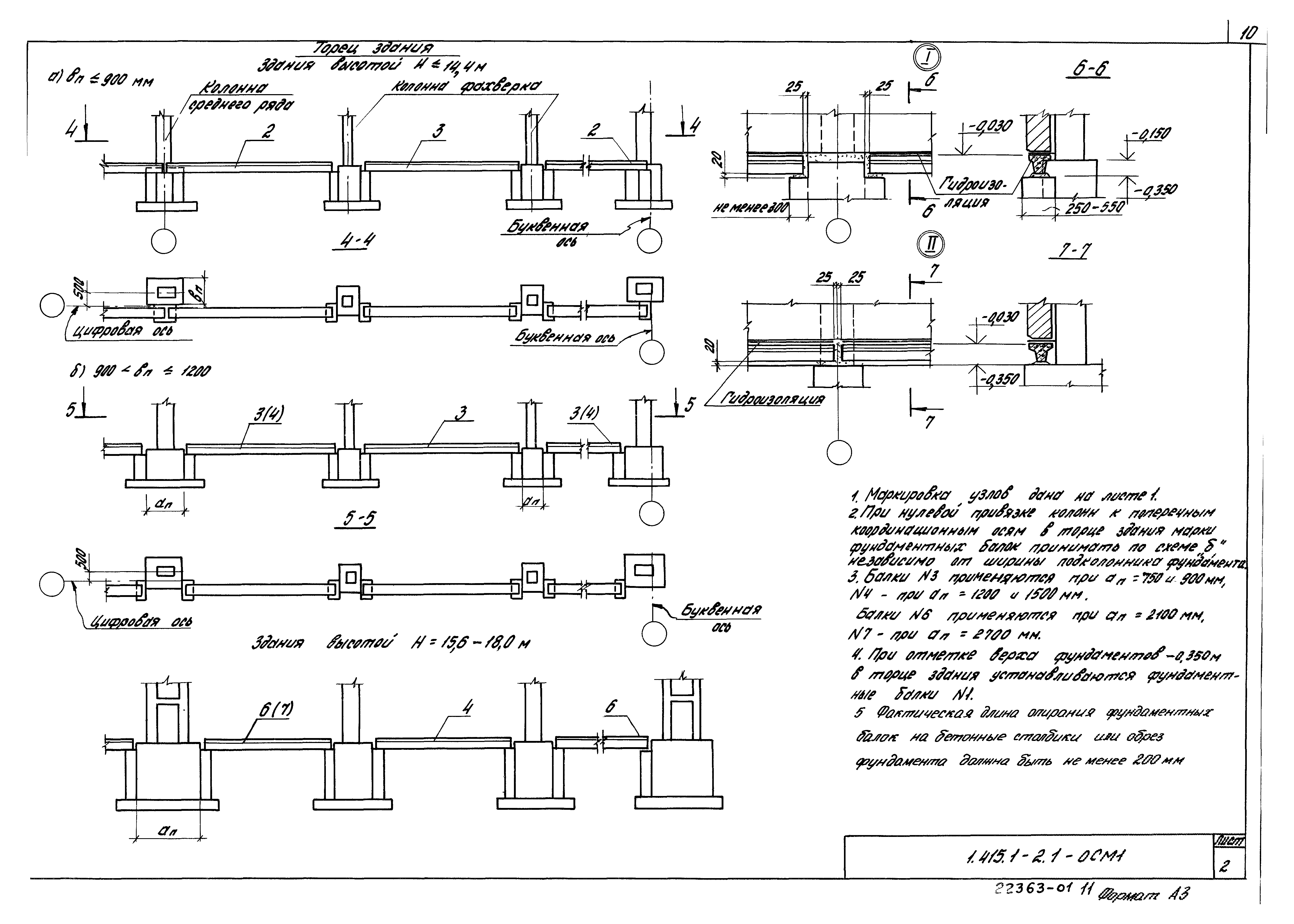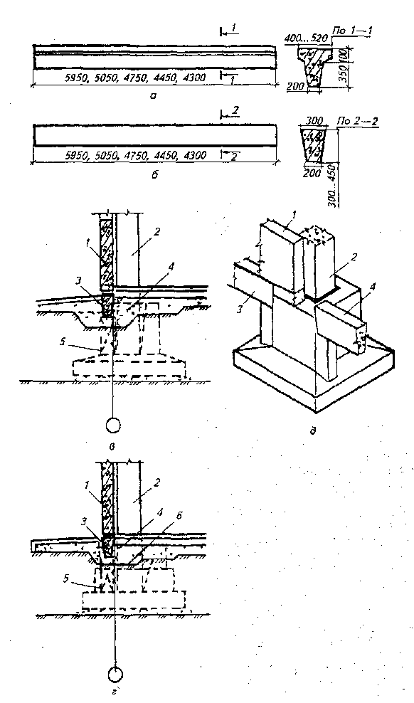 Применение фундаментных балок обязательно в производственных зданиях с кирпичными и блочными стенами. При навесных панельных стенах фундаментные балки хотя и не несут нагрузки от них, однако существенно облегчают производство работ и обеспечивают долговечность нижней части панелей. Установка стен на фундаментные балки кроме экономических создает также и эксплуатационные преимущества — упрощает устройство под ними всевозможных подземных коммуникаций (каналов, туннелей и т.п.).